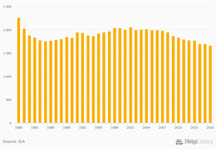 Total petroleum consumption fell 2.07% to 1,657 '000 bpd in France in 2016, according to EIA.