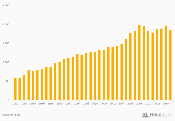 Total petroleum consumption fell 5.69% to 1,850 '000 bpd in Iran in 2015, according to EIA.