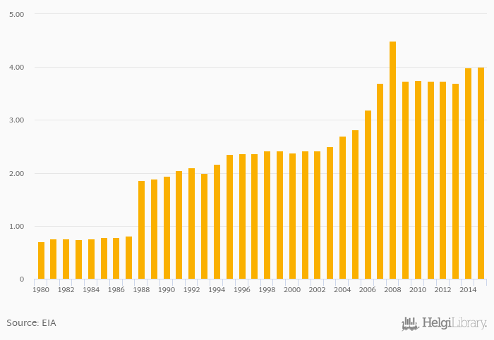 Total petroleum consumption rose 0.402% to 4.00 '000 bpd in Cayman Islands in 2015, according to EIA.