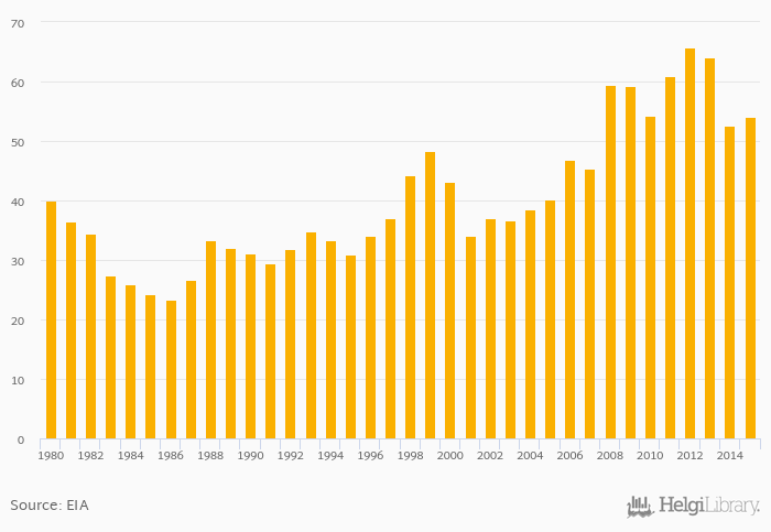 Total petroleum consumption rose 2.66% to 54.0 '000 bpd in Uruguay in 2015, according to EIA.