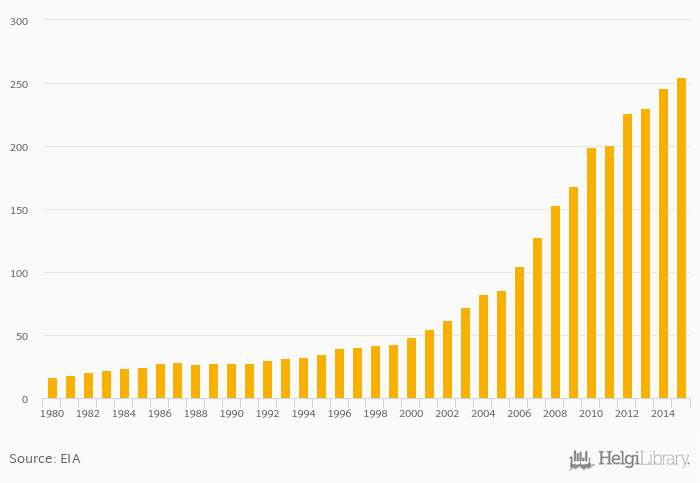 Total petroleum consumption rose 3.71% to 255 '000 bpd in Qatar in 2015, according to EIA.