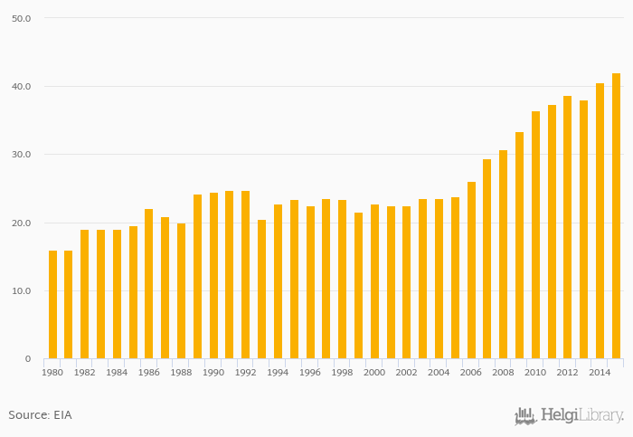 Total petroleum consumption rose 3.71% to 42.0 '000 bpd in Cameroon in 2015, according to EIA.