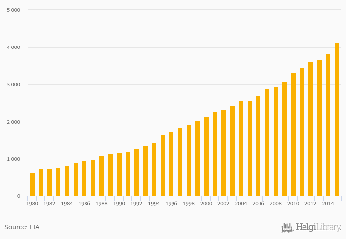 Total petroleum consumption rose 8.04% to 4,142 '000 bpd in India in 2015, according to EIA.