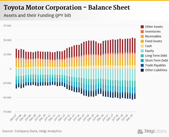 Toyota Motor Corporation's total assets reached JPY 52,680 bil at the end of 1Q2020, up 1.43% compared to the previous year.