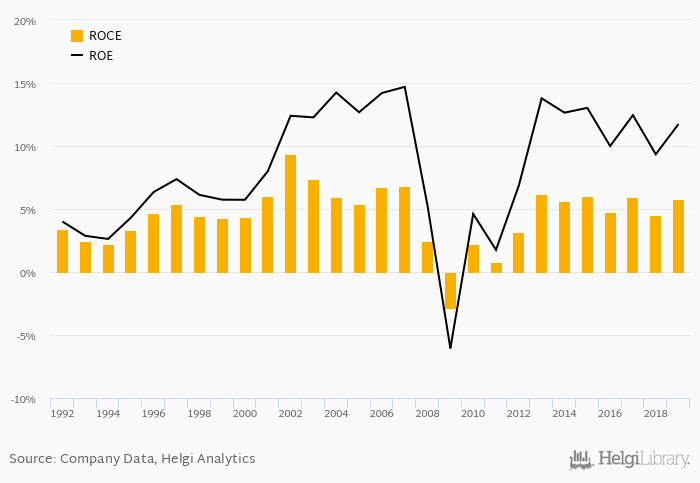 The result implies a return on equity of 11.7% and a return on invested capital of 5.77% in 2019. That is compared to an average of 11.3% and 5.42% over the last five years.