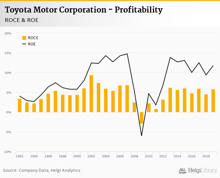 Toyota Motor Corporation made a net profit of JPY 2,473 bil in 2019, up 29.9% compared to the previous year. Historically, between 1992 and 2019, the company's net profit reached a high of JPY 2,473 bil in 2019 and a low of JPY -669 bil in 2009.