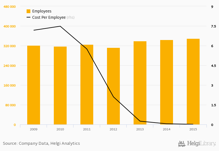Average personnel cost stood at USD 0.011 per month per employee, 77% lower than the previous year. This figure was some 10 years ago.