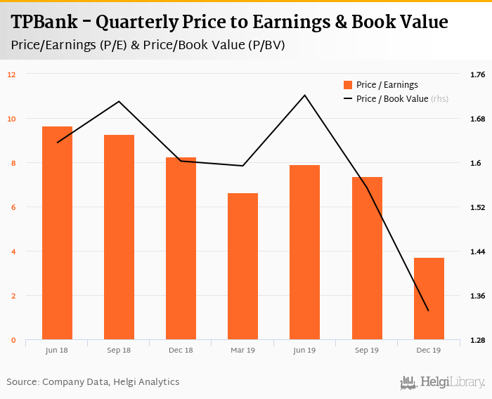 TPBank stock traded at VND 21,050 per share at the end fourth quarter of 2019 implying a market capitalization of USD 751 mil.