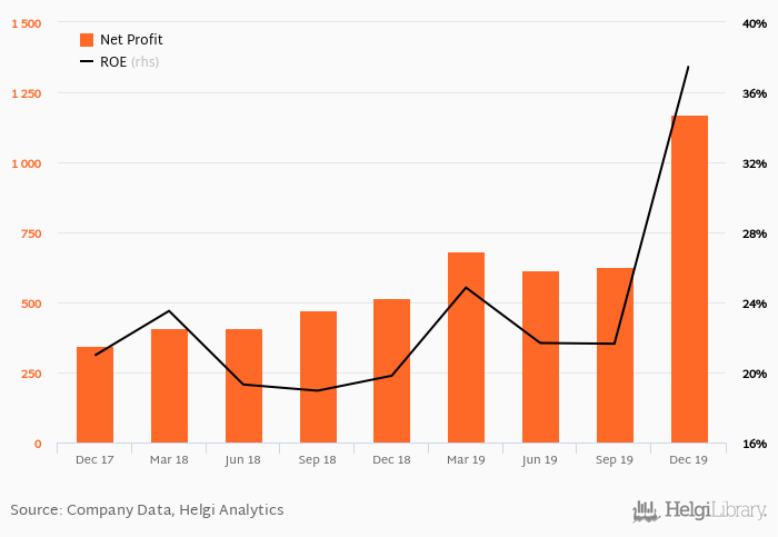 The bank generated its shareholders an average return on equity of 23.1% in the last five years with maximum at 37.5% and minimum at 19.0%.
