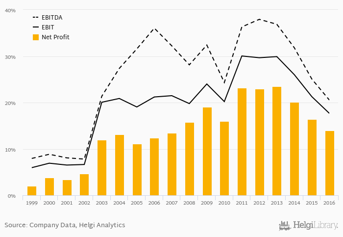 On the operating level, the EBITDA margin reached 20.5% and EBIT amounted to 17.7% of sales in 2016.