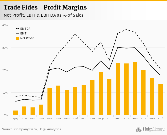 Trade Fides made a net profit of CZK 115 mil with revenues of CZK 828 mil in 2016, down by 18.4% and down by 3.98%, respectively, compared to the previous year.