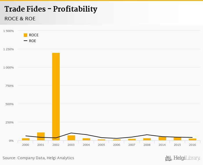 As far as Trade Fides's peers are concerned, Oracle Czech Republic generated ROE of 2.20% and ROCE of 0.415% in 2016. Microsoft Czech Republic's profitability reached 118% and 27.3%, respectively. SAP Czech Republic operated with 41.3% and 49.8% returns in 2016.