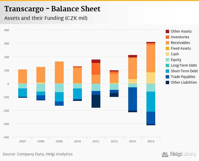 Transcargo's total assets reached CZK 311 mil at the end of 2014, up 46.2% compared to the previous year.