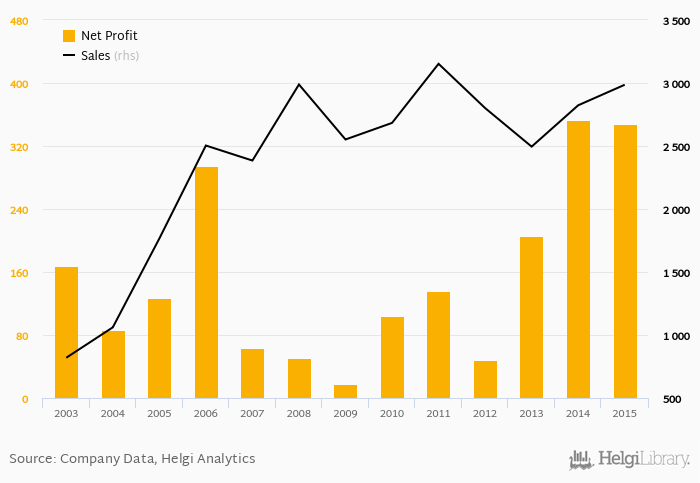 Historically, between 2003 and 2015, the company’s net profit reached a high of RON 353 mil in 2014 and a low of RON 18.3 mil in 2009. Over the last decade the firm's net profit increased by an average of 10.6% a year.