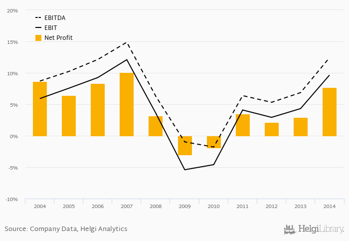On the operating level, the EBITDA margin reached 12.4% and EBIT amounted to 9.65% of sales in 2014.