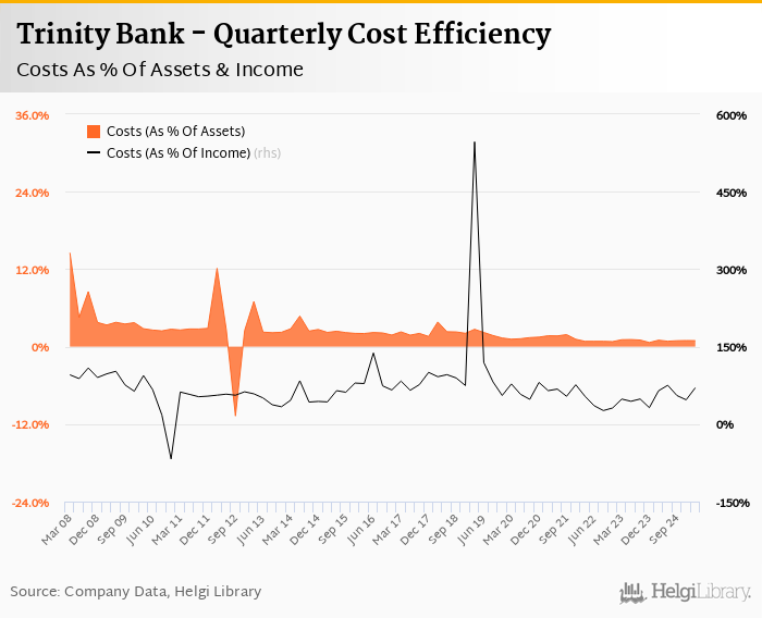 Trinity Bank's cost to income ratio reached 70.4% in the first quarter of 2025, up from 47.0% when compared to the previous quarter.