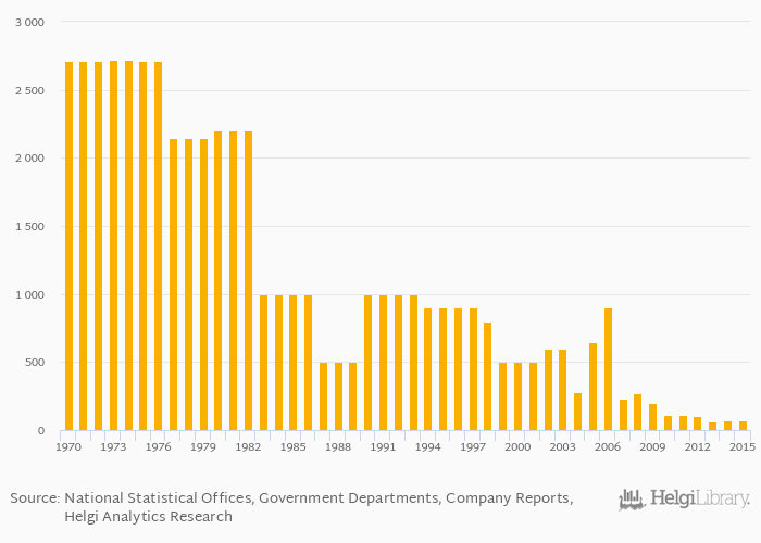 | North Korea | tonnes | 200 | 110 | 110 | 100 | 60.0 | ||||||||||||||||
