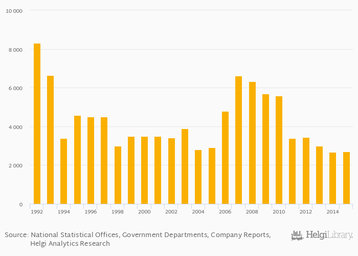 | Russia | tonnes | 5,696 | 5,588 | 3,380 | 3,451 | 2,982 | ||||||||||||||||