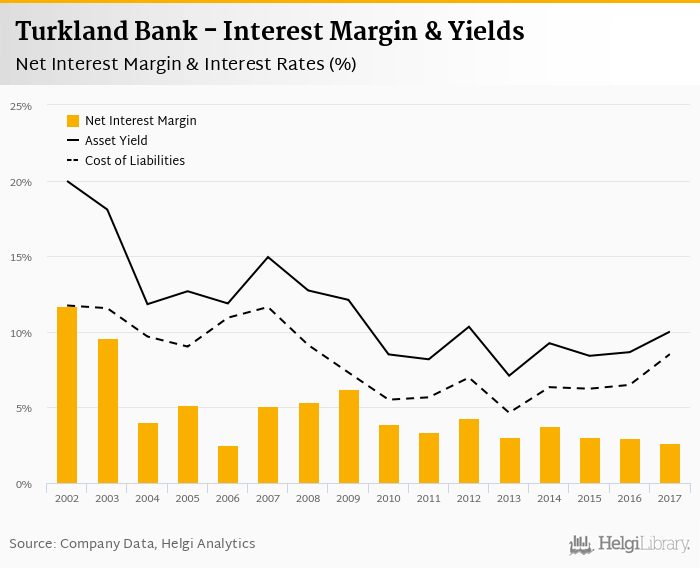 Turkland Bank's net interest margin amounted to 2.67% in 2017, down from 3.01% compared to the previous year.