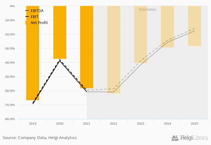 On the operating level, the EBITDA margin reached -59.7% and EBIT amounted to -60.8% of sales in 2021.