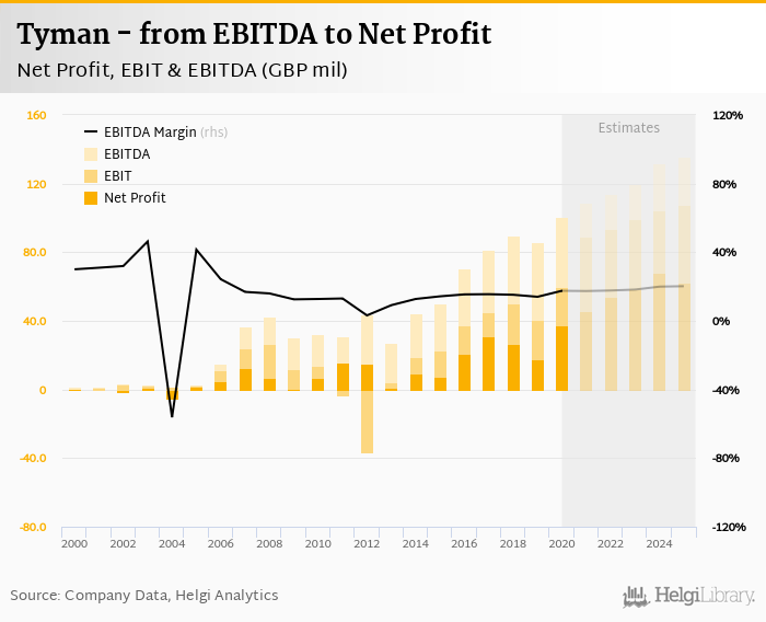 Tyman made a net profit of GBP 37.2 mil with revenues of GBP 573 mil in 2020, up by 110% and down by 6.66%, respectively, compared to the previous year. This translates into a net margin of 6.49%.