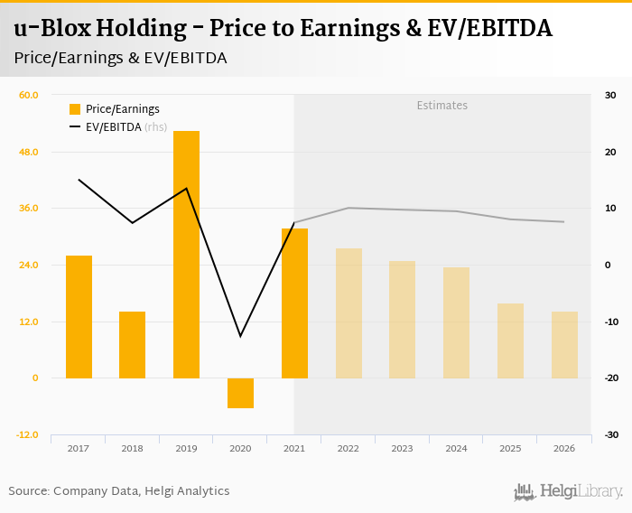u-Blox Holding stock traded at CHF 70.5 per share at the end 2021 translating into a market capitalization of USD 535 mil.