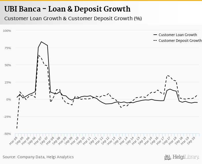 At the end of 2019-12-31, UBI Banca's loans accounted for 117% of total deposits and 66.8% of total assets.