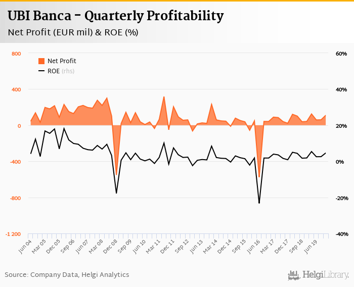 UBI Banca made a net profit of EUR 111 mil in the fourth quarter of 2019, up 165% when compared to the same period of last year. This implies a return on equity of 4.65%.