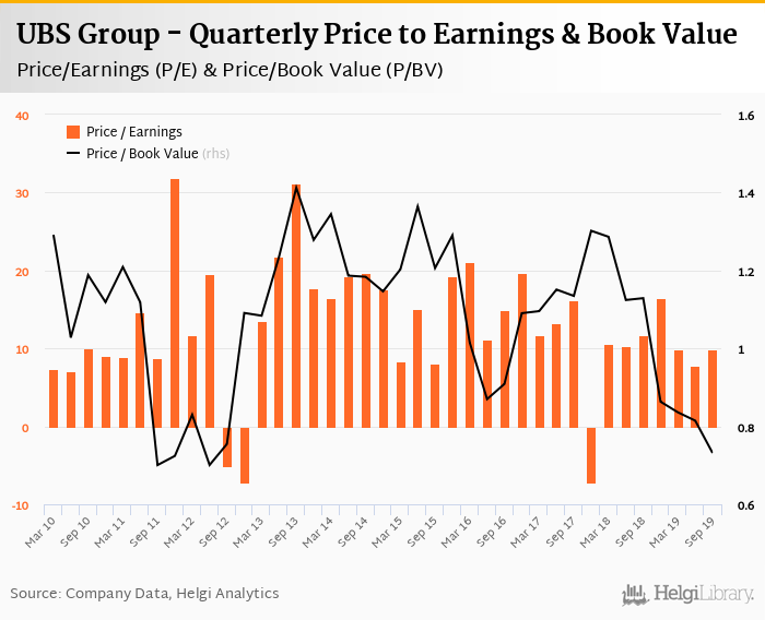 UBS Group stock traded at USD 11.0 per share at the end third quarter of 2019 implying a market capitalization of USD 50,714 mil.