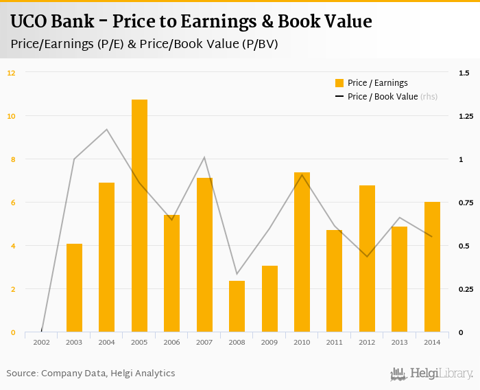 UCO Bank stock traded at INR 67.7 per share at the end 2014 implying a market capitalization of USD 1,090 mil.