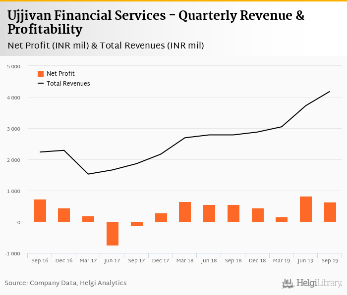 Ujjivan Financial Services made a net profit of INR 632 mil under revenues of INR 4,182 mil in the third quarter of 2019, up 14.9% and 50.2% respectively when compared to the same period last year.