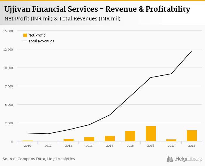 Ujjivan Financial Services made a net profit of INR 1,504 mil under revenues of INR 12,266 mil in 2018, up 480% and 34.1% respectively compared to the previous year.