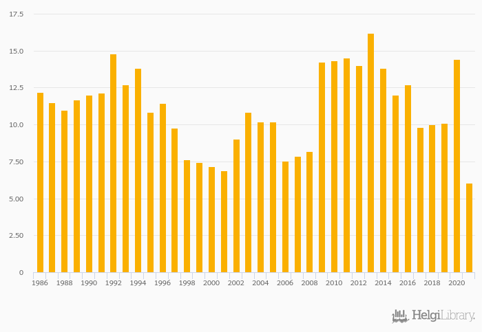 Historically, Unemployment Rate in Bahamas reached an all time high of 16.2% in 2013 and an all time low of 6.06% in 2021.