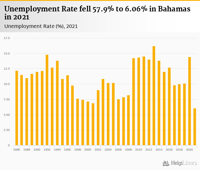Unemployment Rate fell 57.9% to 6.06% in Bahamas in 2021, according to .