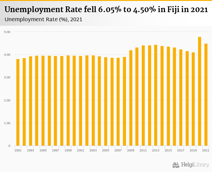Unemployment Rate fell 6.05% to 4.50% in Fiji in 2021, according to .