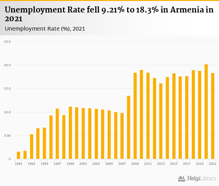 Unemployment Rate fell 9.21% to 18.3% in Armenia in 2021, according to .