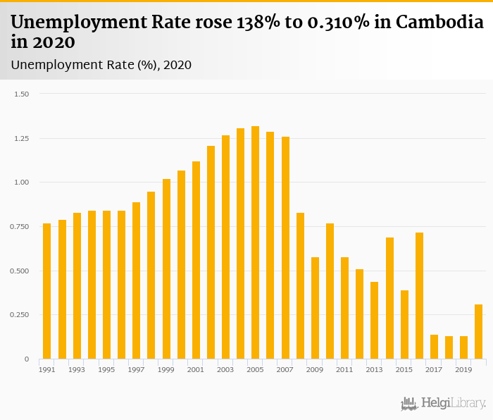 Unemployment Rate rose 138% to 0.310% in Cambodia in 2020, according to .