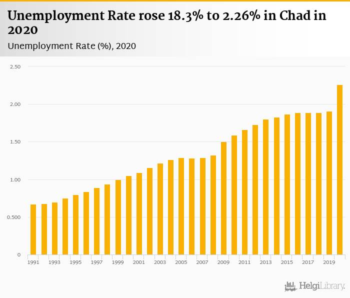 Unemployment Rate rose 18.3% to 2.26% in Chad in 2020, according to .