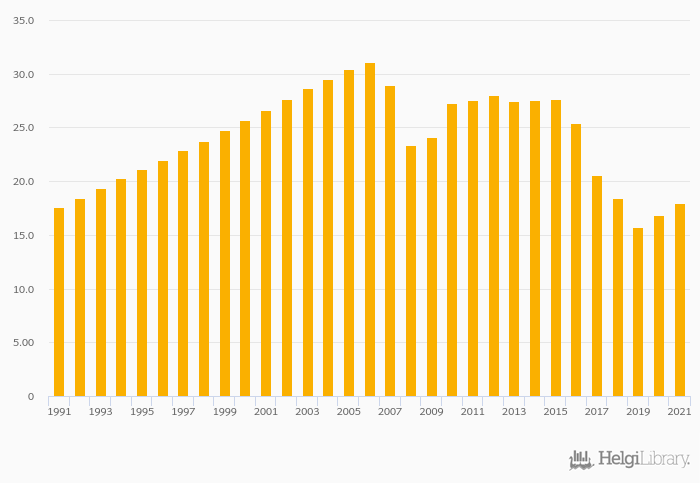 | Bosnia and Herzegovina | % | 20.5% | 18.4% | 15.7% | 16.9% | 18.0% | ||||||||||||||||