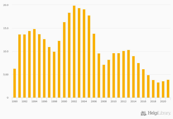 Historically, Unemployment Rate in Poland reached an all time high of 19.9% in 2002 and an all time low of 3.28% in 2019. When compared to Poland's main peers, Unemployment Rate in Czechia amounted to 3.50%, 3.27% in Germany, 4.95% in Russia and 8.44% in Ukraine in 2021.