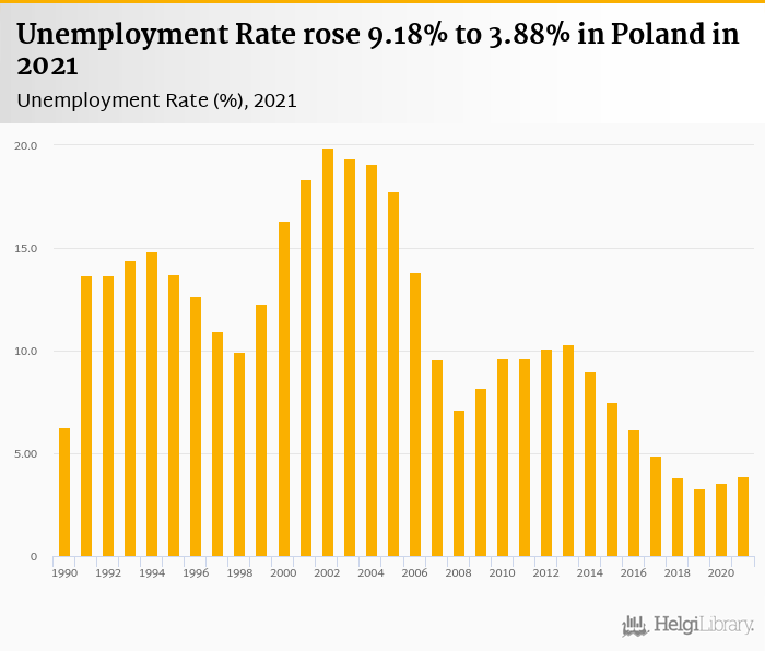 Unemployment Rate rose 9.18% to 3.88% in Poland in 2021, according to .