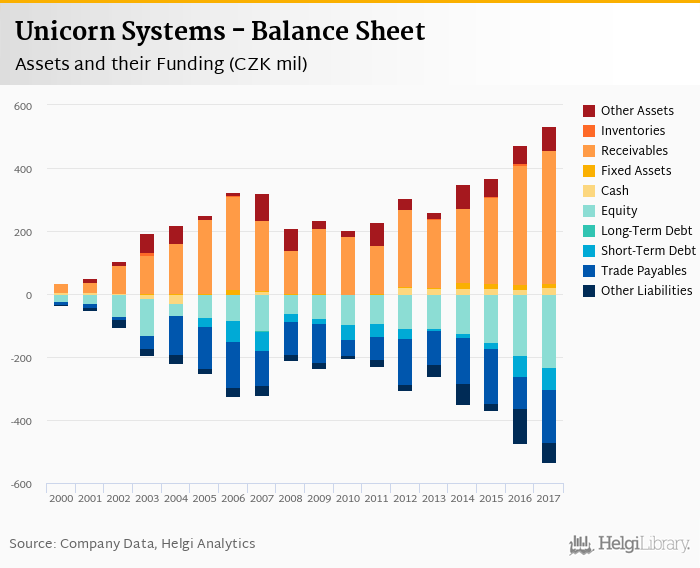 Unicorn Systems's total assets reached CZK 532 mil at the end of 2017, up 12.9% compared to the previous year.