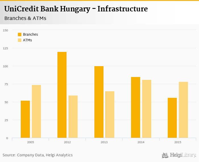 Comparing UniCredit Bank Hungary with its closest peers, OTP Group operated a network of 1,340 branches and 3,857 ATMs in 2015.