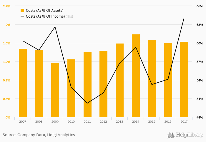 When compared to total assets, bank's cost amounted to 1.63% in 2017, up from 1.60% a year earlier.