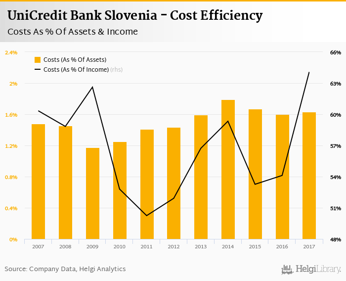 UniCredit Bank Slovenia's cost to income ratio reached 64.1% in 2017, up from 54.1% compared to the previous year.