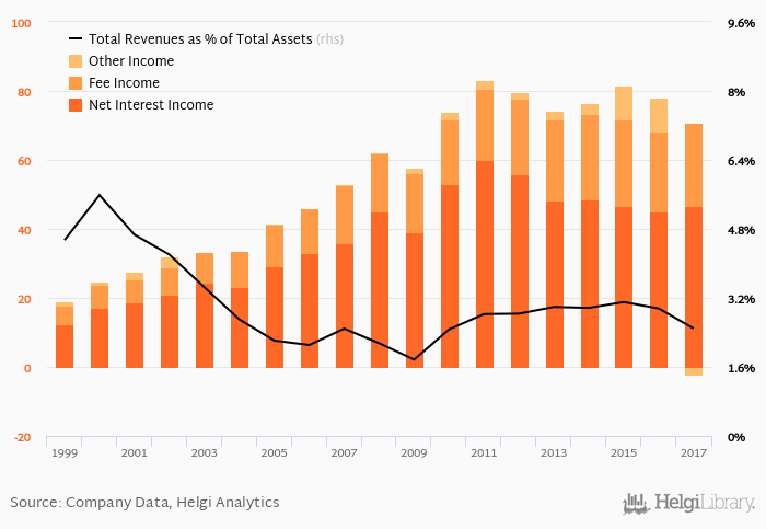 Bank's total revenues accounted for 2.49% total assets in 2017, down from 2.95% a year earlier.