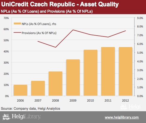 Although deteriorating, the asset quality of the Bank remains pretty good. Non-performing loans reached 5.6% of total loans at the end of 2012, up from 1.7% in 2007. More than 58% of the troubled loans have been covered by loan provisions at the end of 2012, up from 49% in 2007