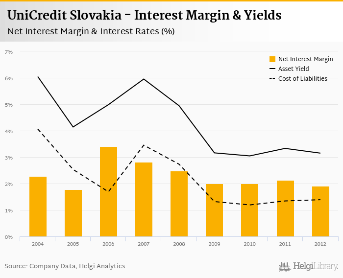 UniCredit Slovakia's net interest margin amounted to 1.92% in 2012, down from 2.13% compared to the previous year.