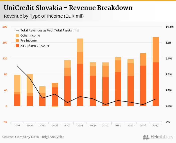 UniCredit Slovakia generated total banking revenues of EUR 174 mil in 2017, up 30.7% compared to the previous year.