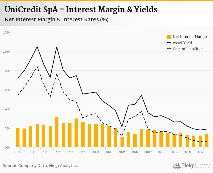 UniCredit SpA's net interest margin amounted to 1.35% in 2018, up from 1.25% compared to the previous year.